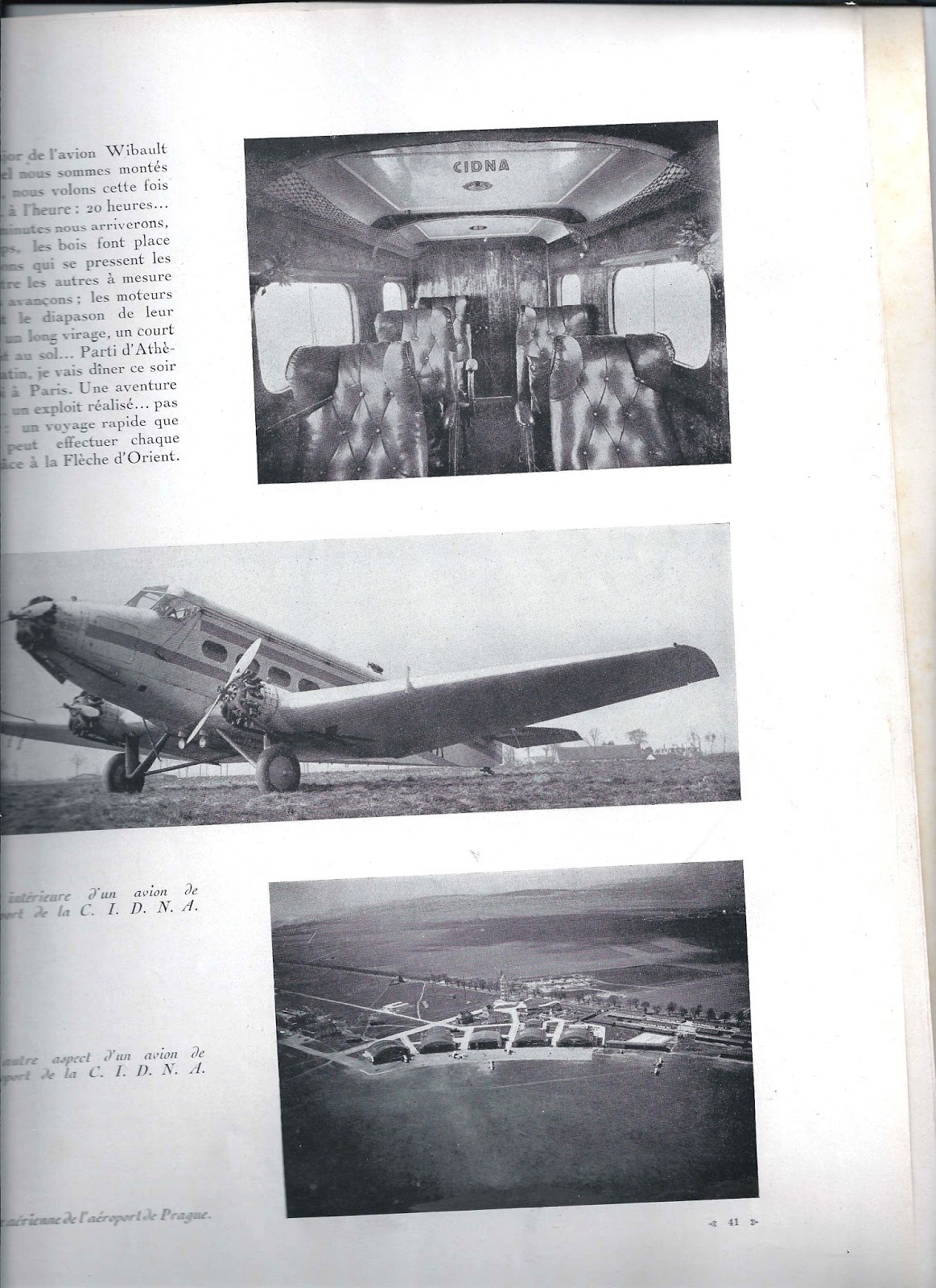 Mais voici Prague, la ville aux cent clochers.... 16 heures 25 nous repartons, Nuremberg, Strasbourg 18 heures10, et dans le calme magnifique de cette soirée d'été, tirés par les trois puissants Titan Major de l'avion Wibault dans lequel nous sommes montés à Prague, nous volons cette fois à 200 km, à l'heure ; 20 heures.... dans dix minutes nous arriverons, les champs, les bois font place aux maisons qui se pressent les unes contre les autres à mesure que nous avançons; les moteurs diminuent le diapason de leur chanson, un long virage, un court roulement au sol...